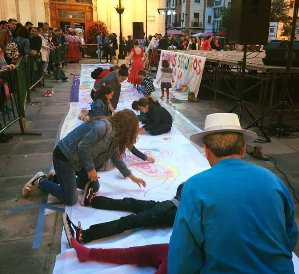 Es una propuesta en la que los participantes libremente podían pintar las figuras que más les representasen: niños bailando, corriendo, saltando, jugando. Un lienzo de más de 10 metros para que todos pudiesen participar en una “Nit de l’Art” muy especial en Castelló.